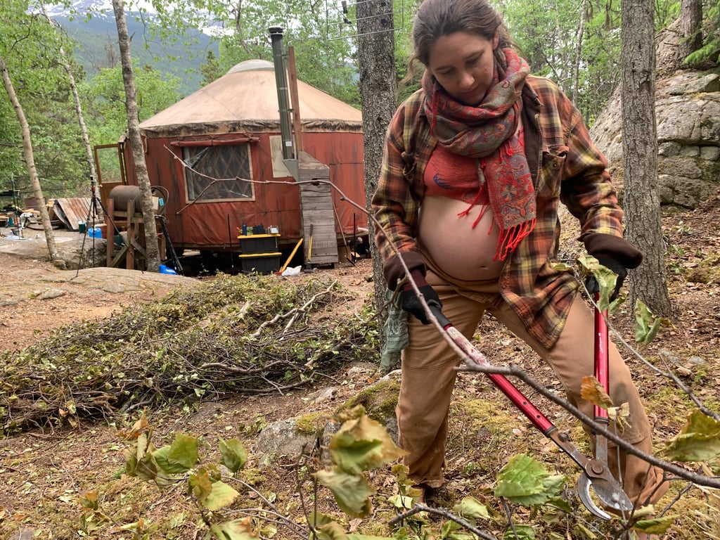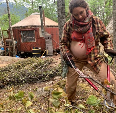 Our beautiful “Fairy House” lies behind me in this photo. A one room yurt, with no running water and the most incredible view of the mountains in Southeast Alaska. Shortly after we had settled back into the Fairy House and decided to make it our home, we knew we wanted to grow our own food and began the process. I wanted to make it a hugelkutur garden, using all of our felled tree branches, and Felipe carried up every bag of soil, every garbage bin of compost, manure, mulch and sea weed. I struggled, watching him doing so much of the labor. My pregnancy has luckily been a very physically uneventful experience so far, besides the exhaustion. Yet, I was not ready to struggle so much against my independent streak, and ego to prove that I have “to do it all.” I’ve had to learn about my own limits, and after some tears I’ve been doing my best to practice gratitude and appreciation-rather than succumb to my frustrations. And honor that I too am carrying ‘a huge load’ though it may look different.